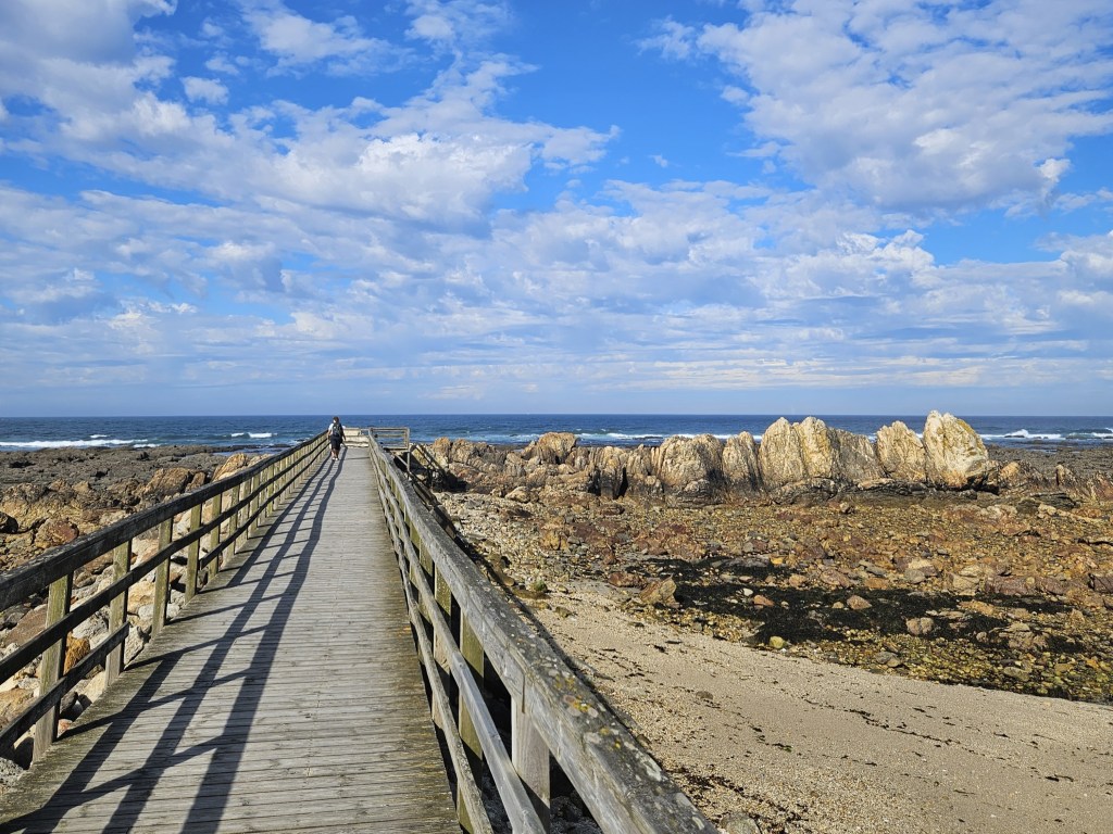 As we got closer to Ancora, the rain clouds gathered and the boardwalks seemed to go in the wrong direction. With the help of our good friends Mr Google and Mr Wise Pilgrim, we decided that the only way straight to the bridge into town was to head off into the sand dunes for a bit, and they were right. There may well be a detour where you can follow the boardwalk all the way in, but if we wanted to avoid the rain, we needed to get into town ASAP, and a bit of sand walking was a small price to pay. Soon we could see the bridge and it was easy to get across. We ducked into a waterfront bar, and the minute we sat down, the rain came down in buckets.