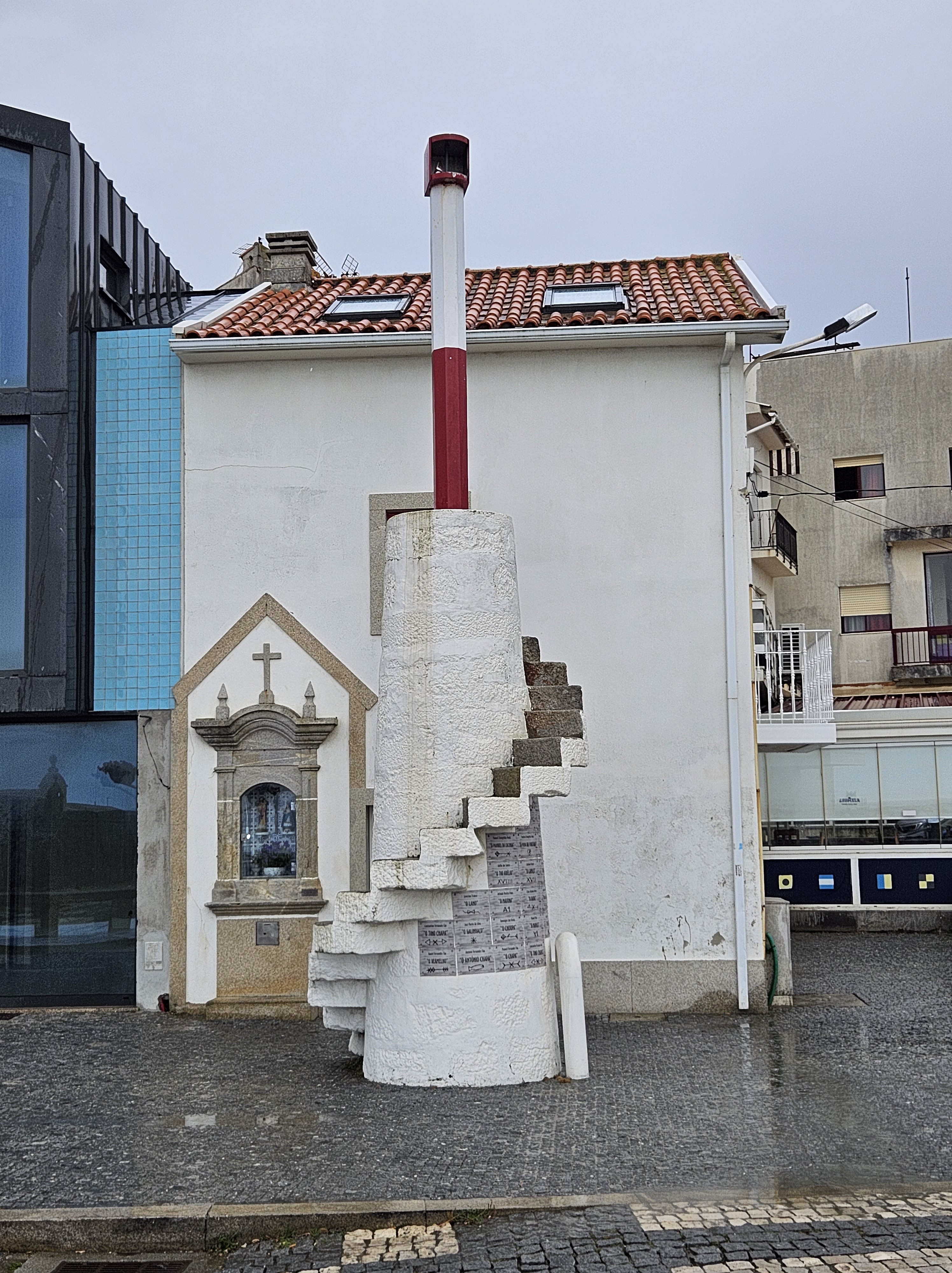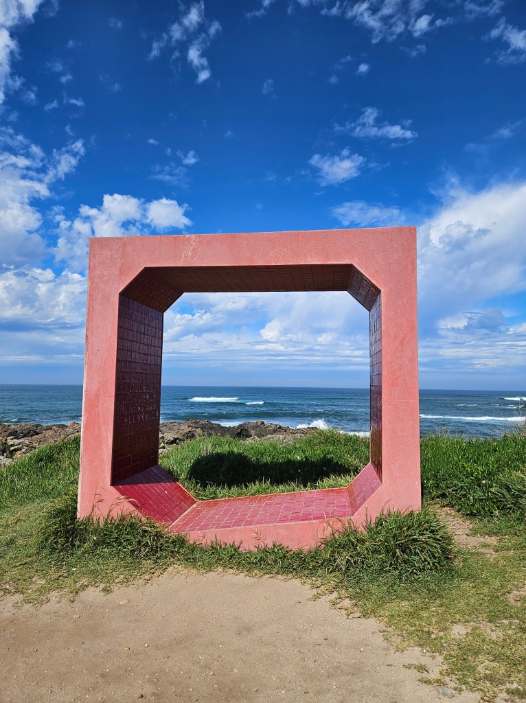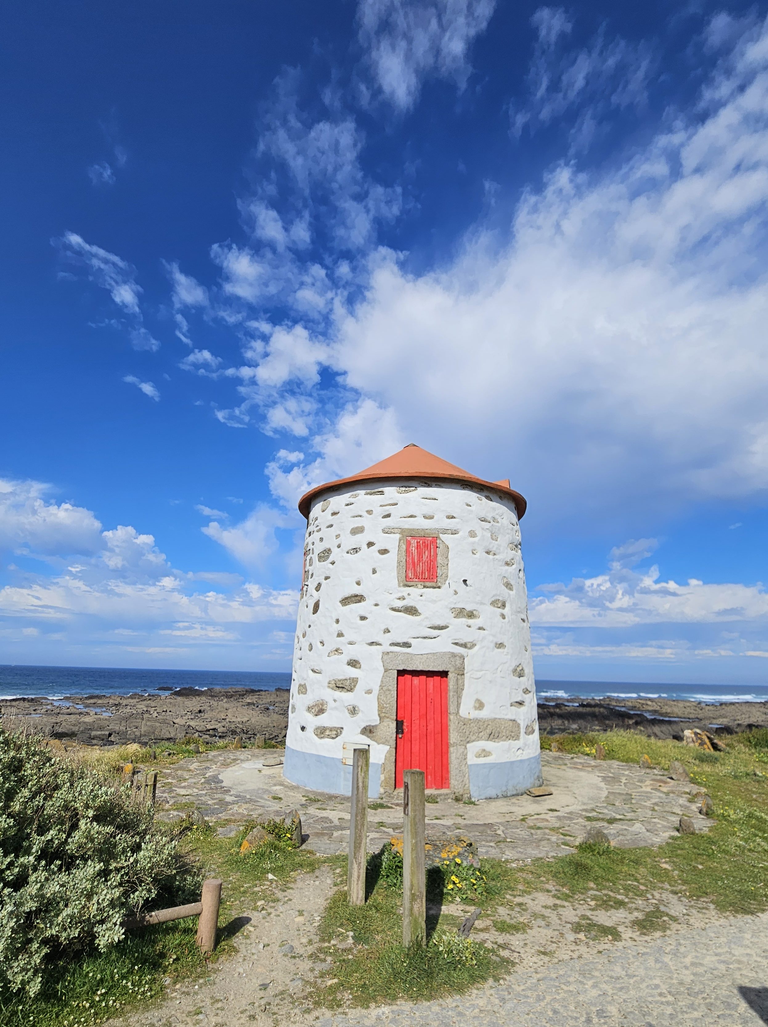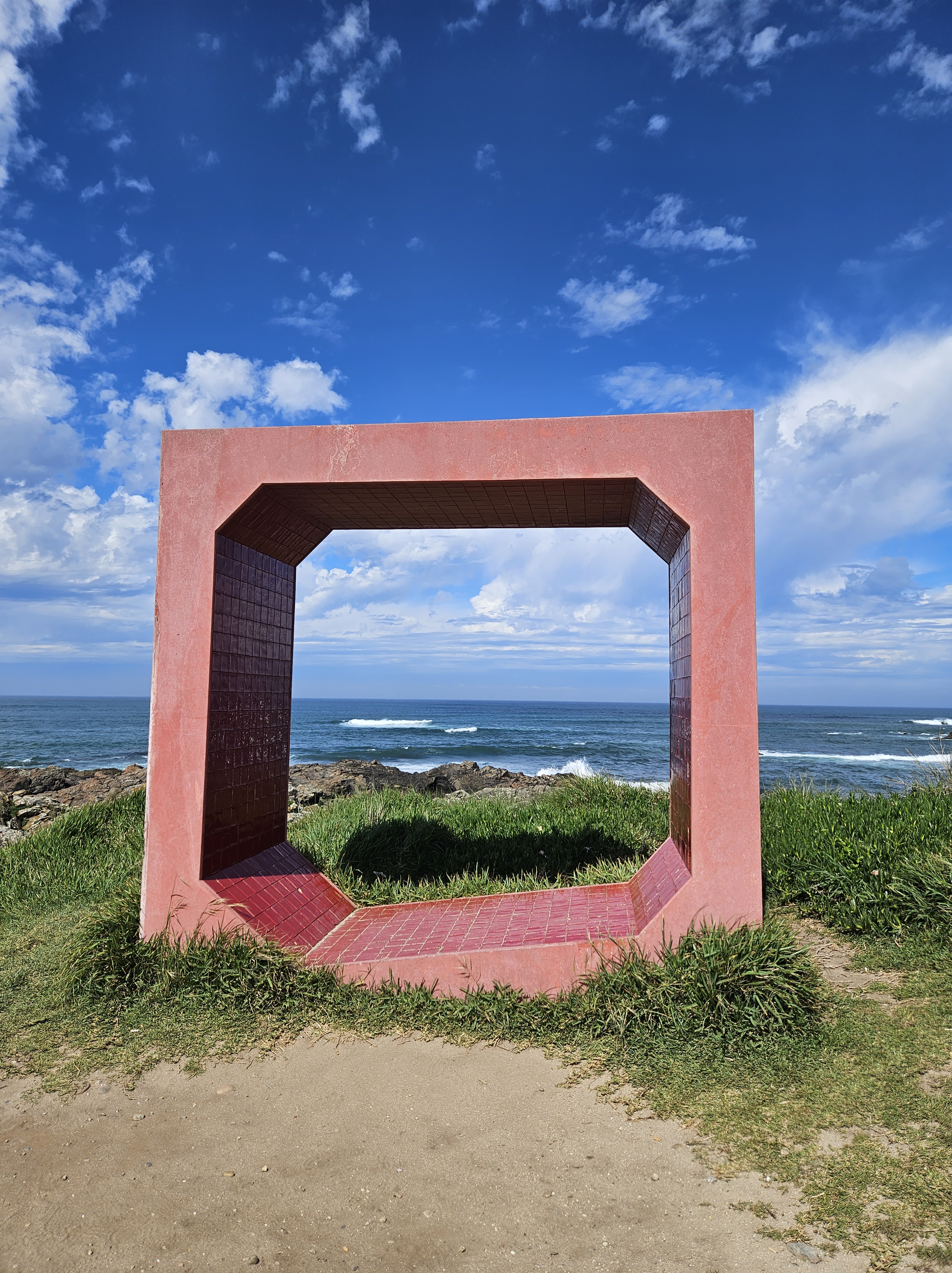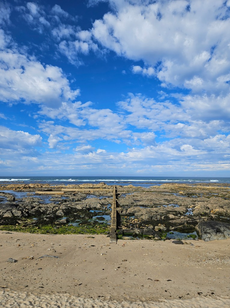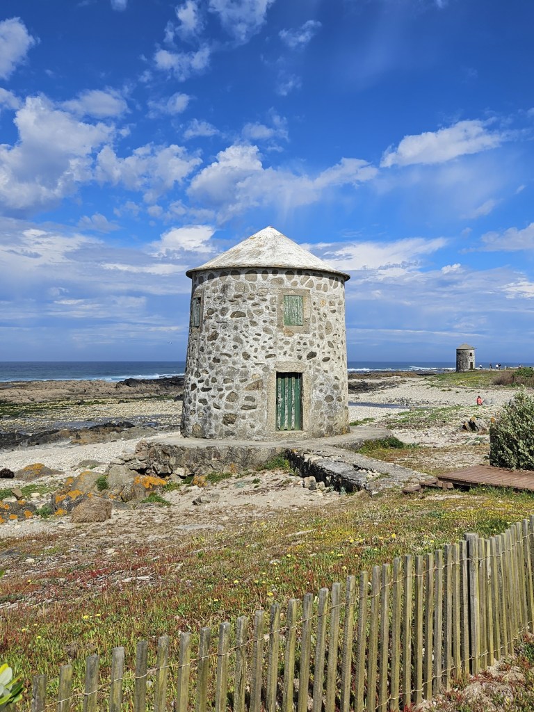 At Carreço – recognisable by the red frame provided for your coastal snapshots, or indeed your walking buddy – we checked the Wise Pilgrim app for alternatives to the road and took a chance on the path less travelled, staying close to the coast. The trail was rocky and winding and overgrown at the beginning, and there were big stones there with ancient carvings, though we couldn’t pinpoint any markings on our way past.