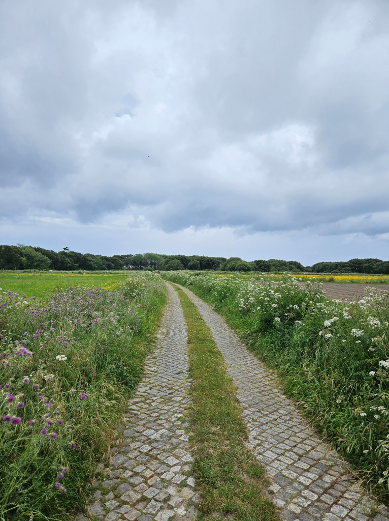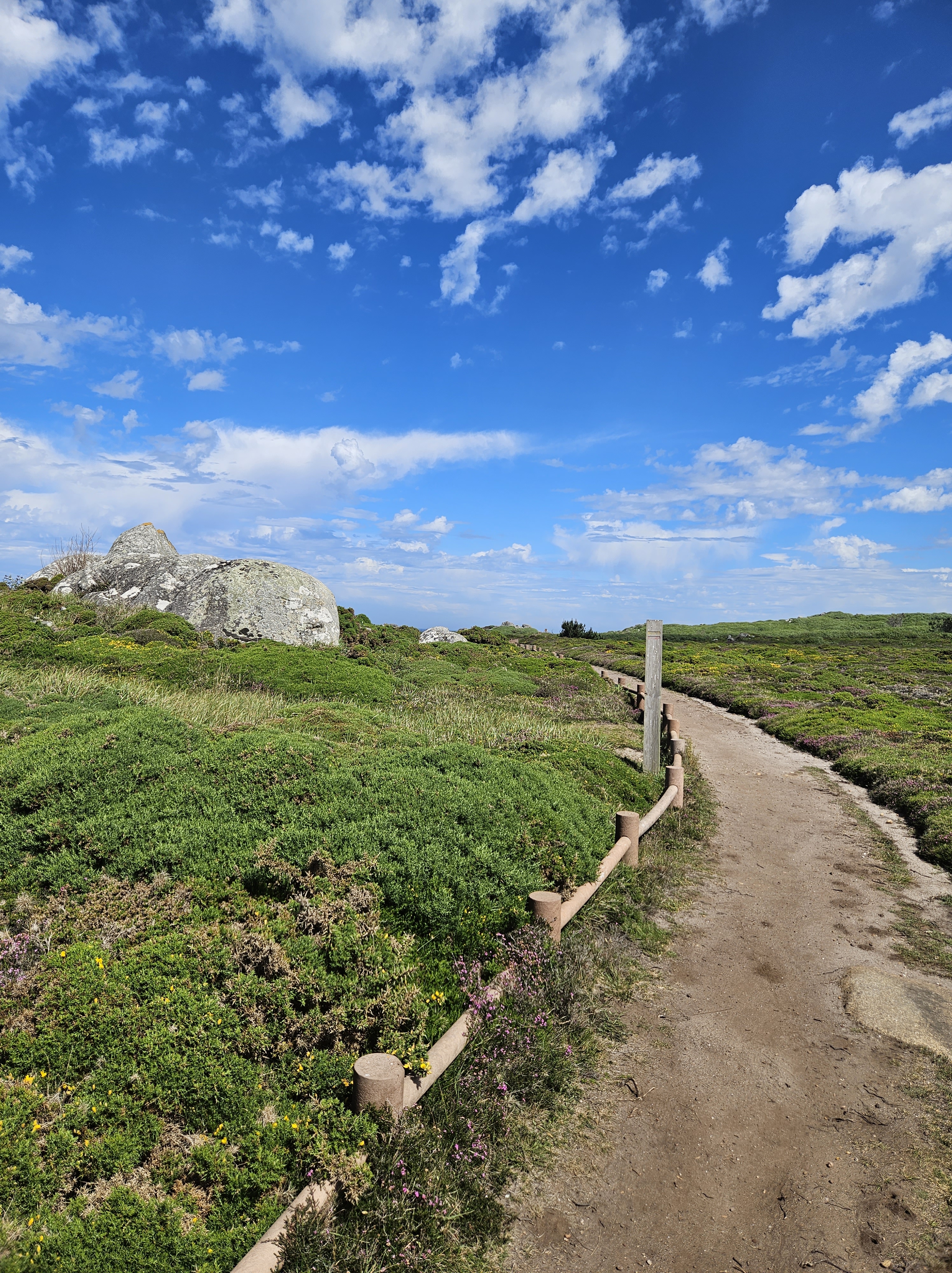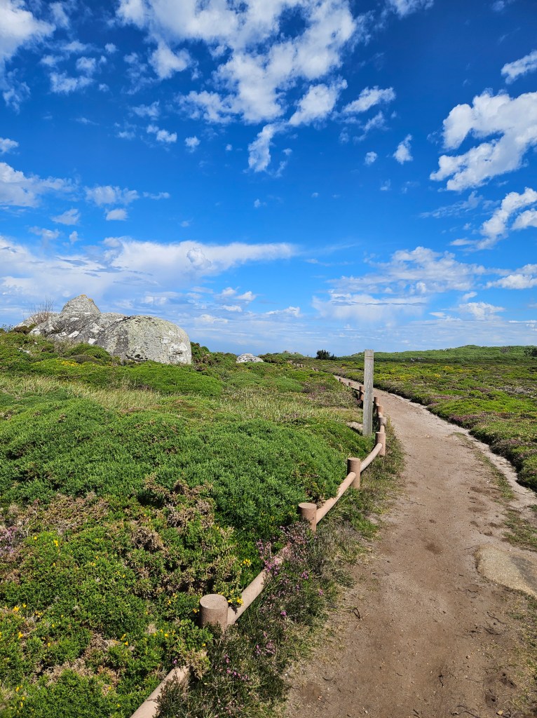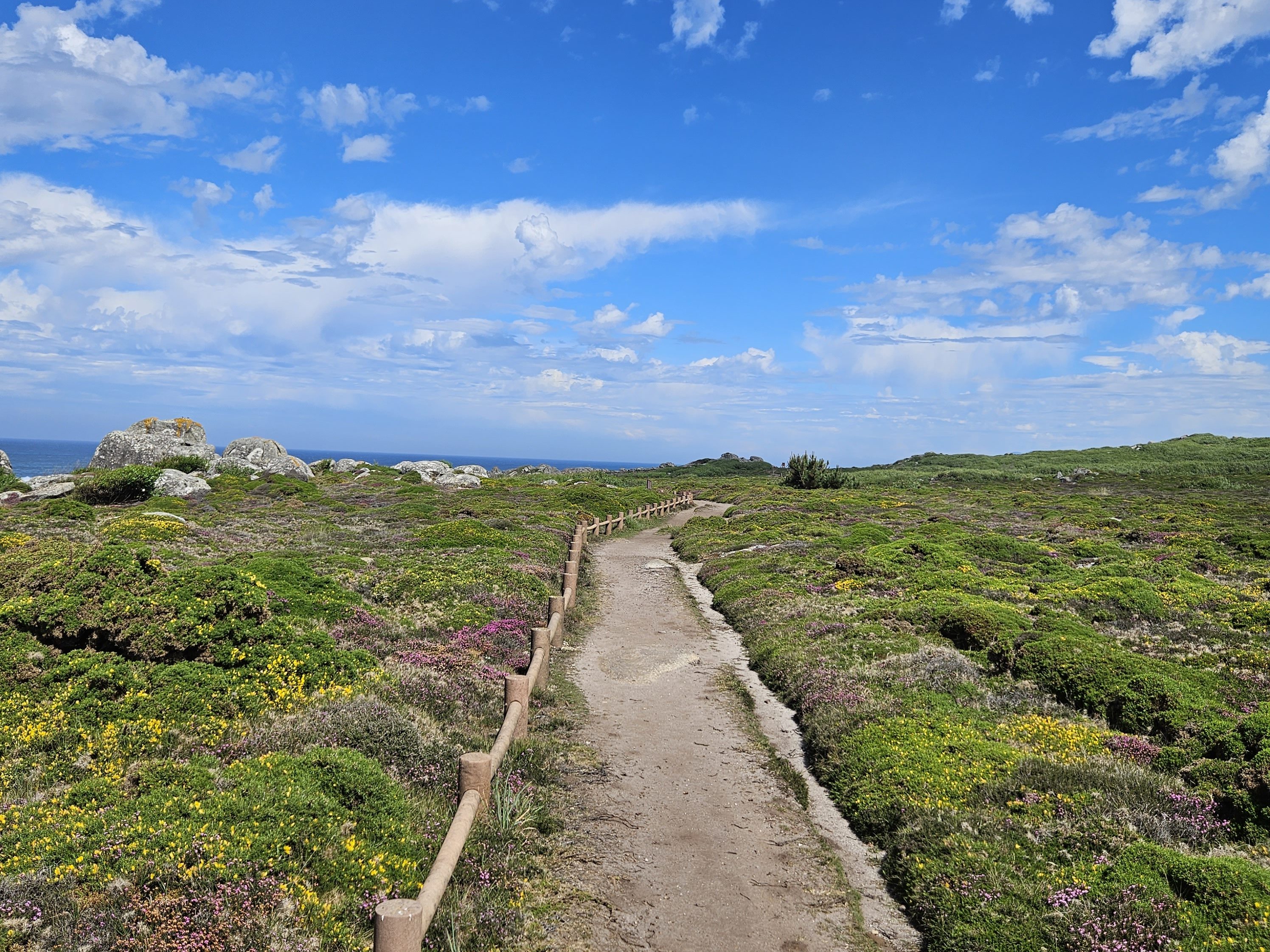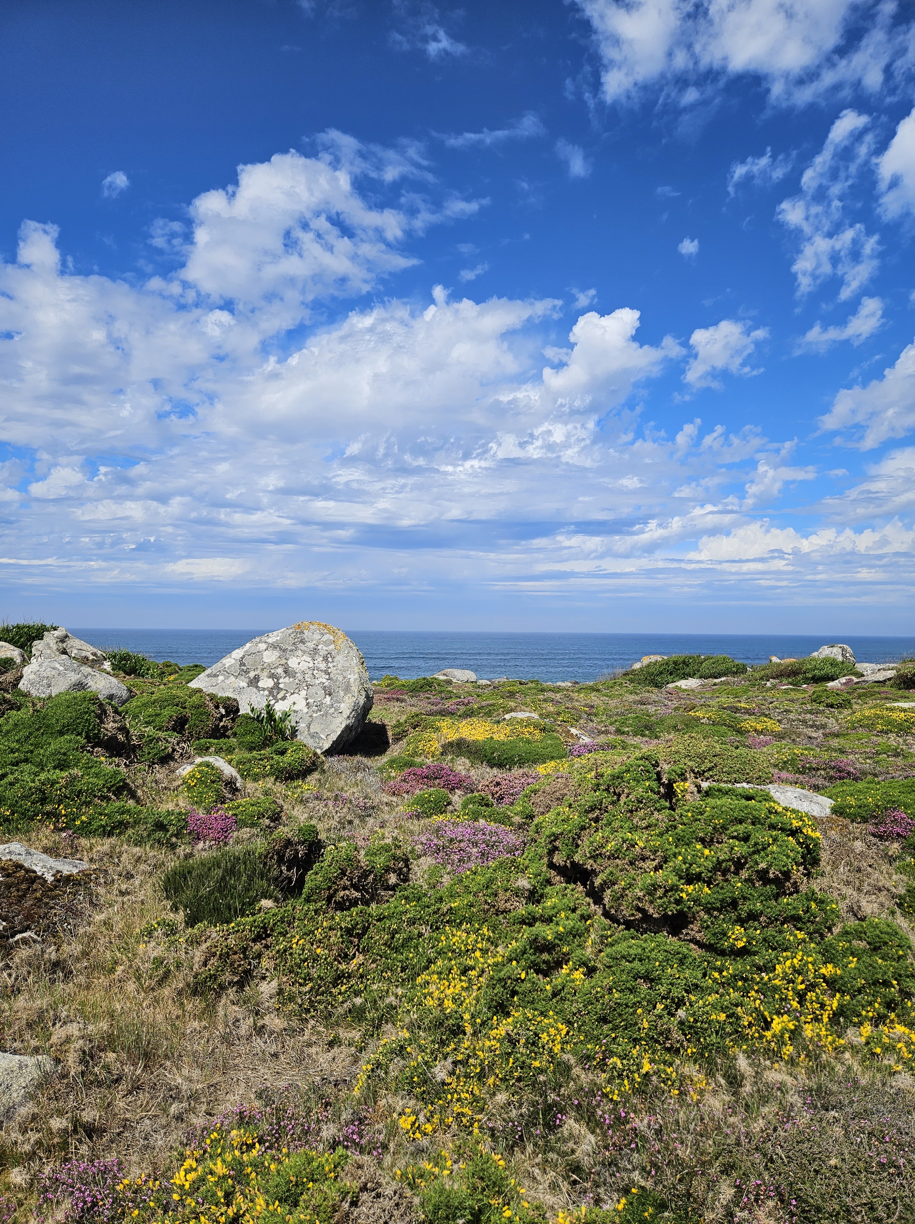 Then we came up on a totally unexpected and incredible carpet of heather, moss, and flowers stretching out in front of us – after so much sand, rock and sea, this was a fabulously refreshing sight, and I must have taken forty photos of it for posterity. Such a treat and absolutely worth the initial worry if it was a viable path. More people came after us as well and seemed to stop, stare and wonder as much as we did.