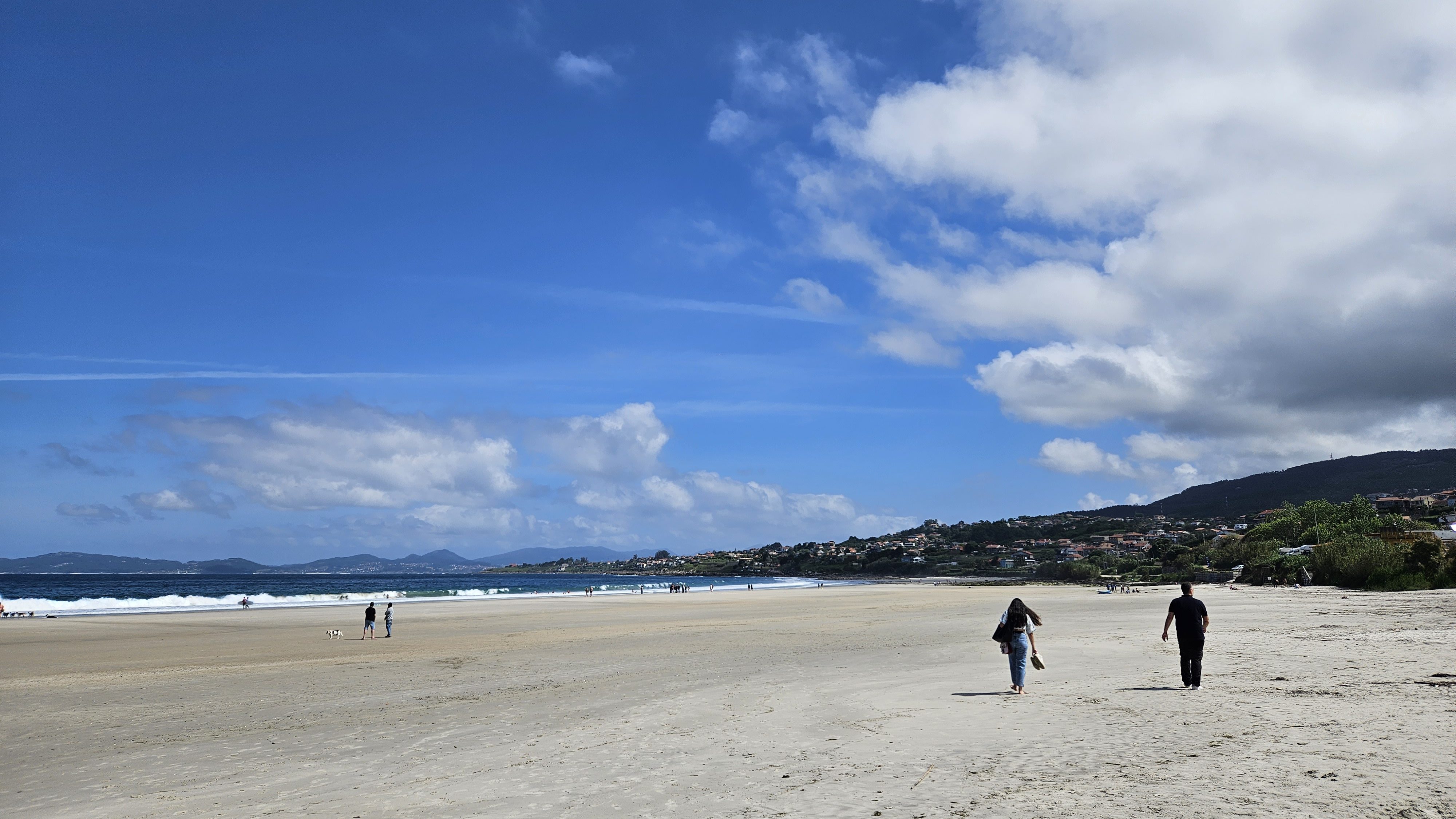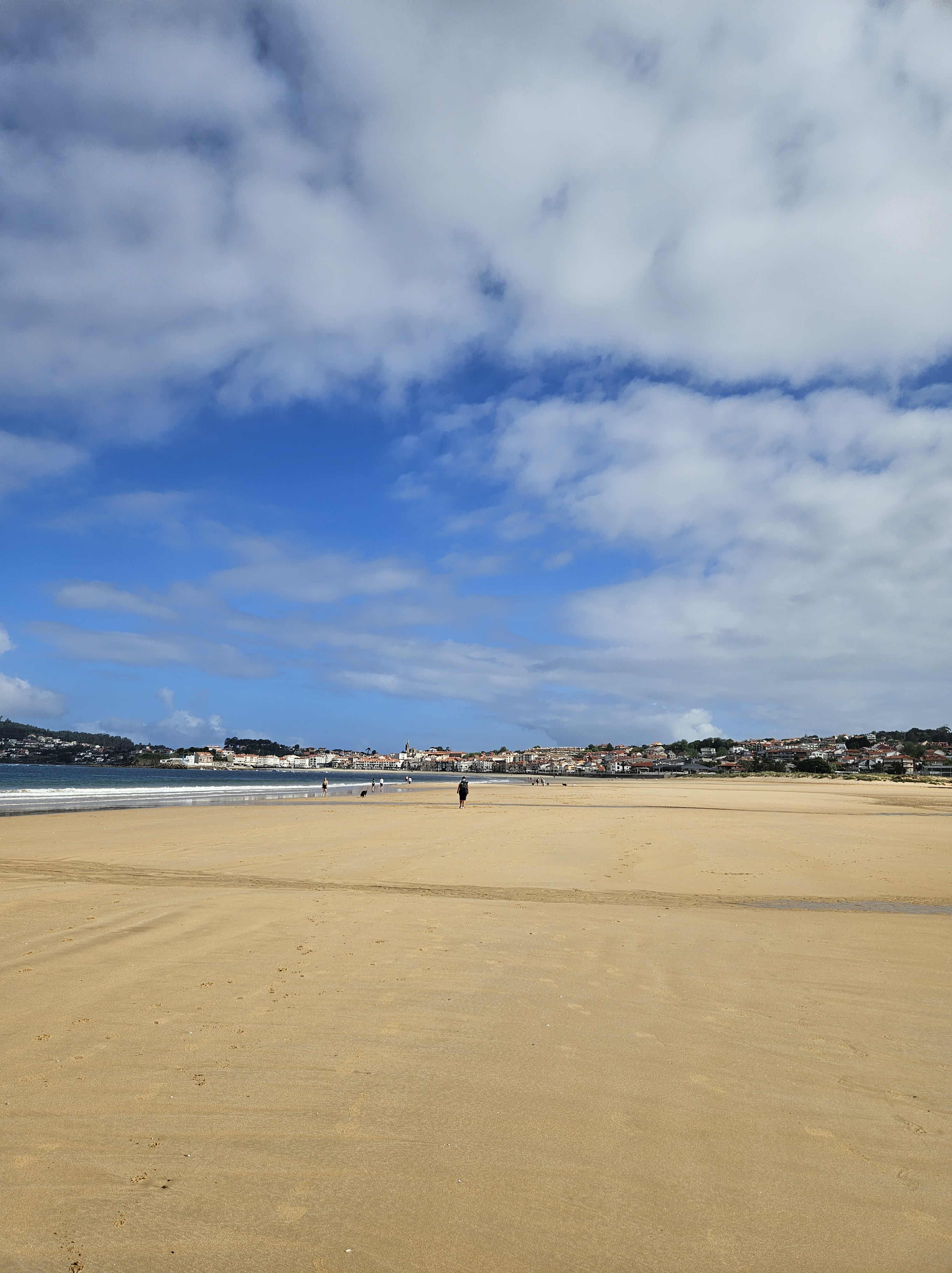 Beach one: Praia America, a long, sweeping, picture perfect sandy beach, popular and well used. We stopped for a second coffee in Nigrán at the other end while feasting our eyes on swimmers, walkers, dogs, horses, and also a good smattering of pilgrims.
