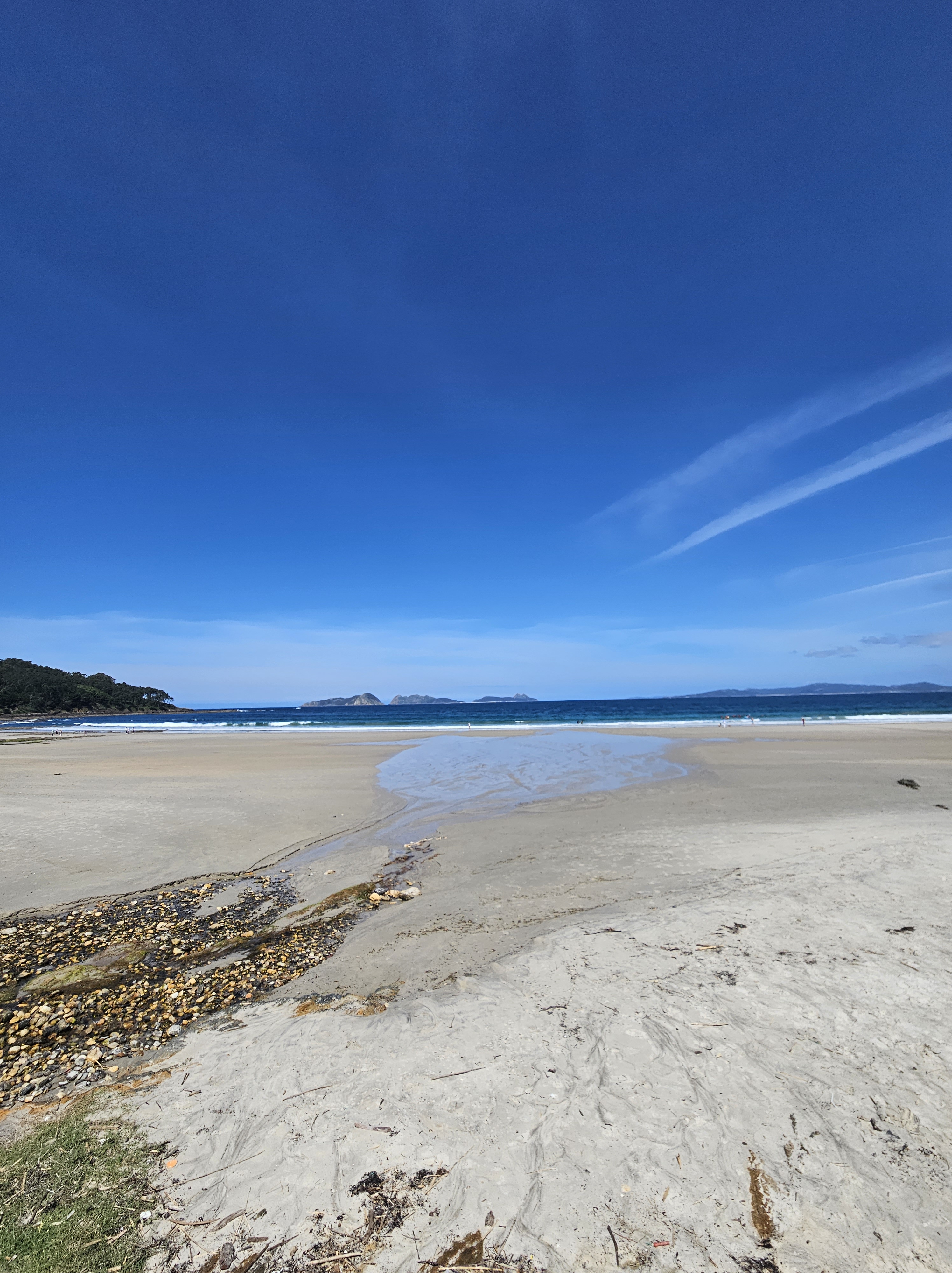 Beach three: Praia de Patos (map shows up several names dotted along), Birthday girl’s favourite, with a view of the craggy Cies islands. It was lively with swimmers, surfers, hand-holding couples, grandparents, kids, dogs racing around, lots of sun, sand and sea. Could have stayed all day.