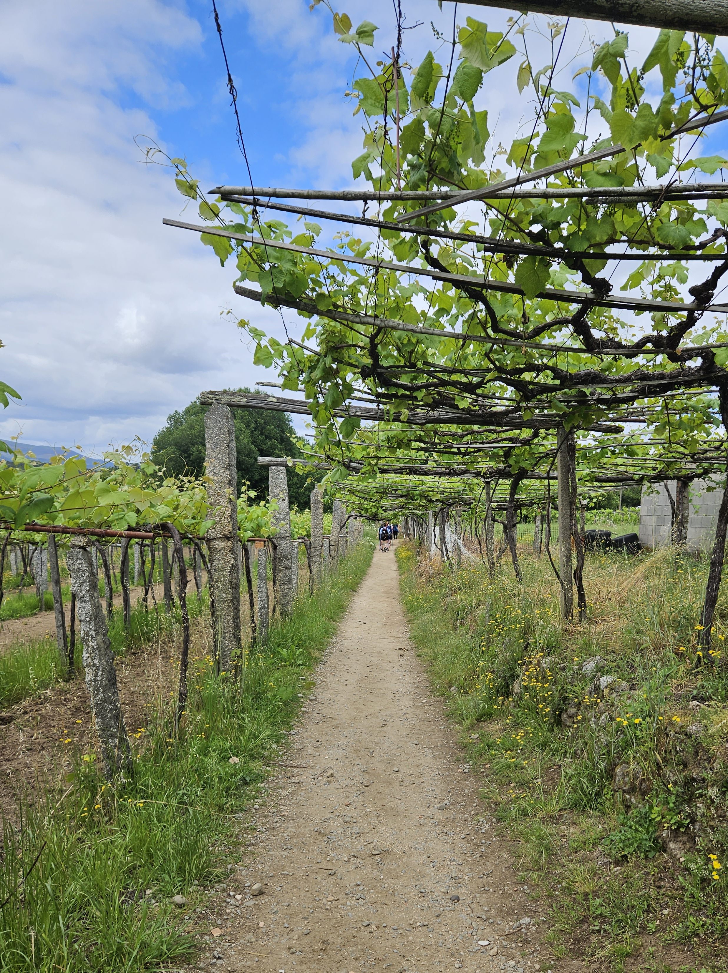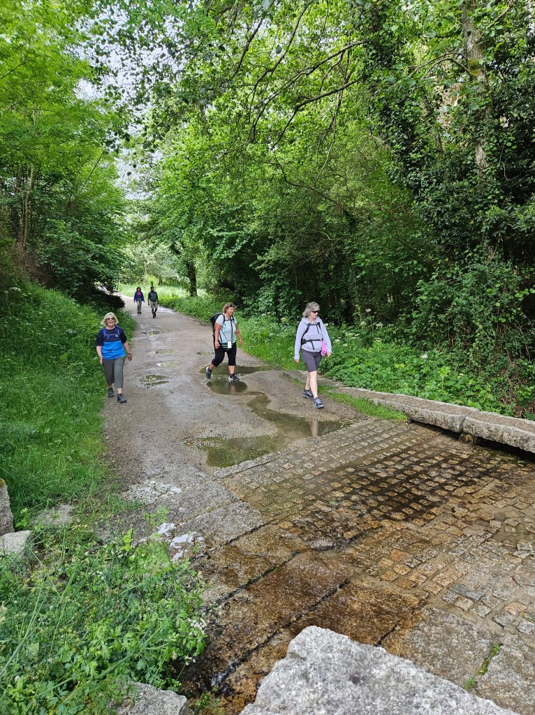 From Pontevedra some pilgrims leave the Coastal – well, we’d really been on the Litoral, following the coast as closely as possible – and take a few days on the Variante Espiritual. We thought about it, but decided to stay as we were. The Canadian ladies were also carrying on to Caldas de Reis, so we ended up walking together.