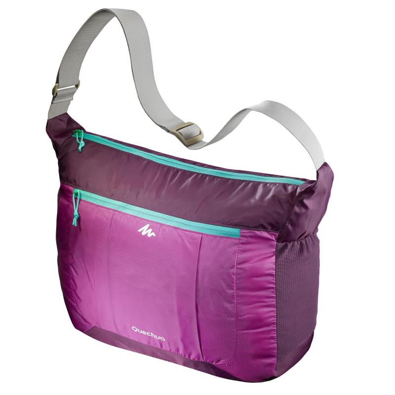 - Decathlon foldable bag for hand luggage – this one is pretty perfect, and cheap, and available in Spain. I also use it as my ‘arrival bag’ – toiletries in the zip pocket, clean clothes and towel inside, clothesline and clips in the inside pocket – so I can grab it and go straight to the shower on arrival, hang it in the shower with my sidebag inside and emerge showered, brushed and dressed!