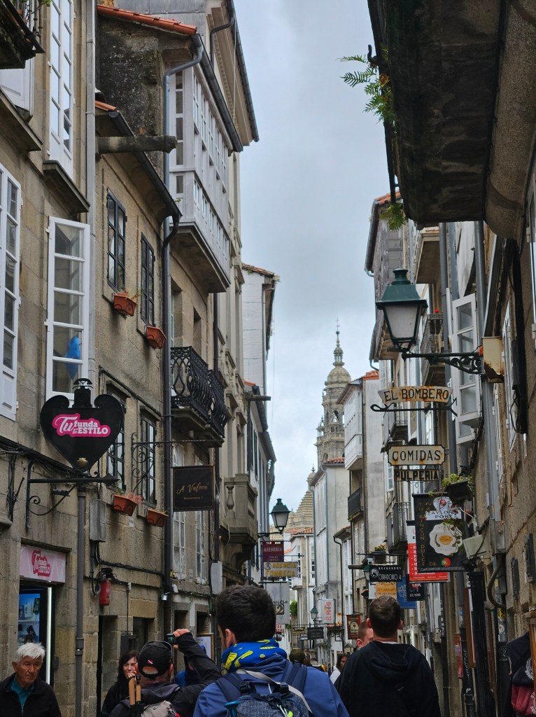 There was laughter and tears as we entered the square and finally joined the crowd of elated pilgrims in front of the cathedral. After hugs and photos I led the ladies down the steps to the surprisingly empty bar café with a view to the cathedral face. What better place to celebrate with an arrival ankerbier and some snacks! It wasn’t warm though, and after sitting still and savouring our achievements for a while it was time to split up and go and check in to our respective rooms, dump the bags, put on extra layers and get out again, as you do.