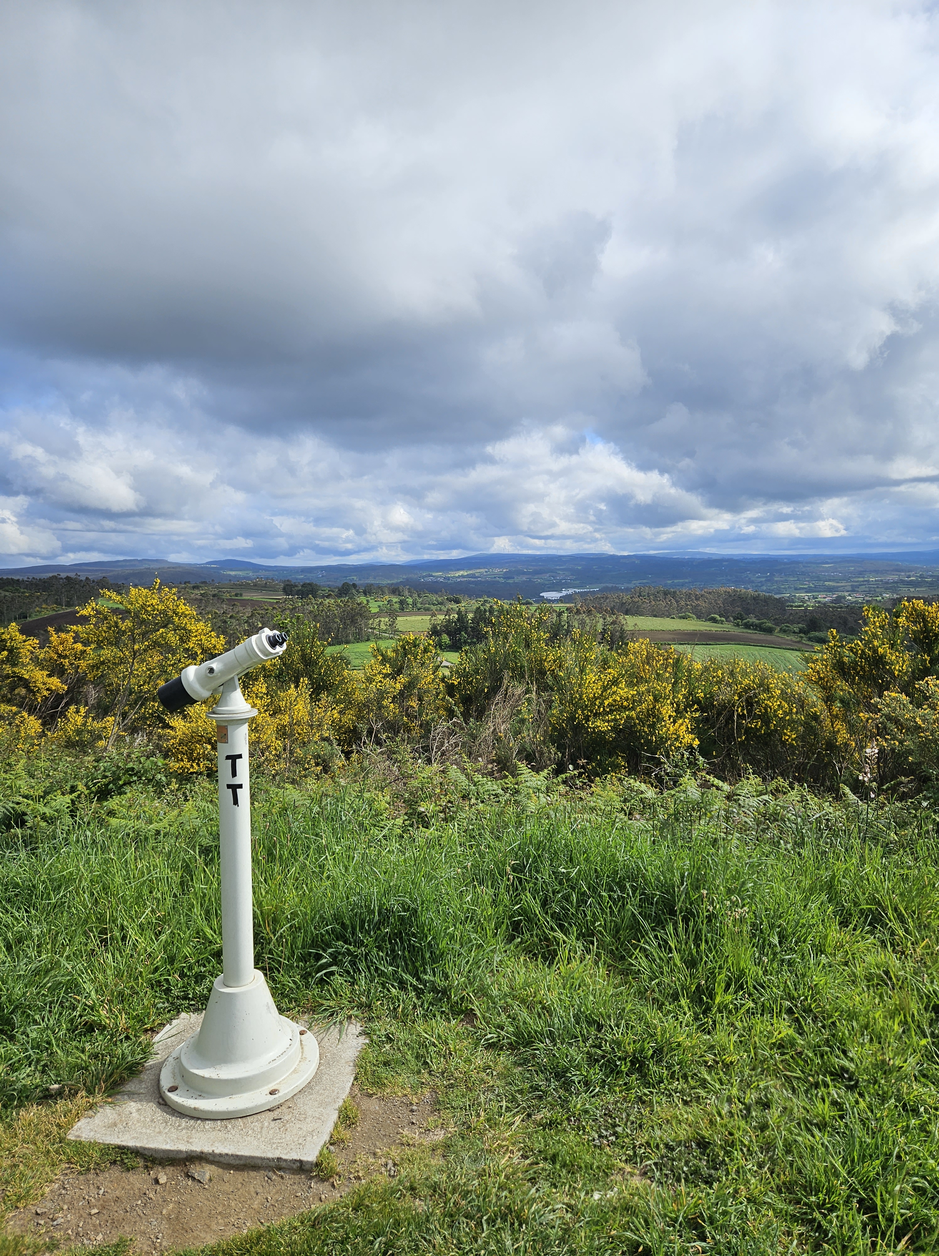 Then we wound our way steadily up, up and up hill, at one point there is even a combined rest area and viewing platform with a binocular thingy for those who wanted to really study the landscape and views. Confusingly we could see water from there, and if I had been walking in from the meseta I would have squealed with joy, but alas it’s ‘just’ a lake, apparently. On a gorgeous day like the one we had though, the view is well worth the effort, lake or no lake.