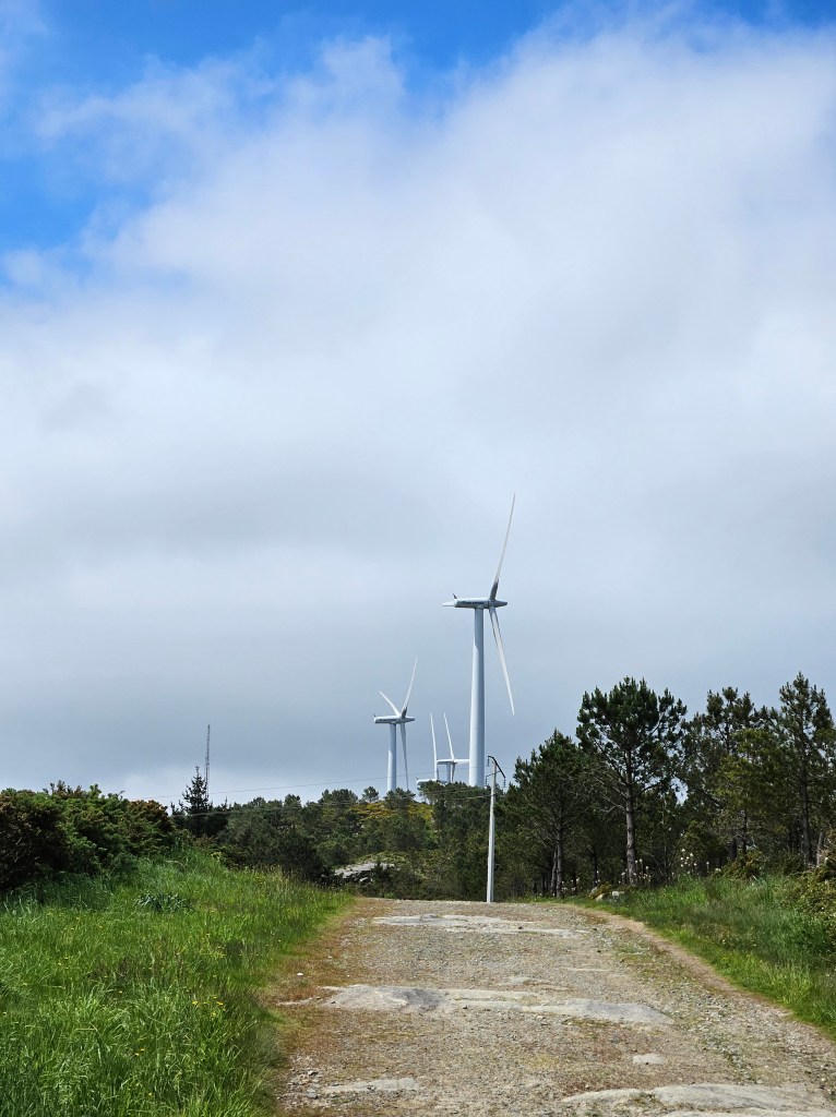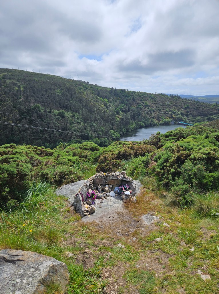 Then we continued up and up and up, past more petroglyphs we couldn’t see, looking down on the lake or reservoir further and further below us, on our way to O Logoso. I had booked a room there early because I really wanted to stay there again. It has a mix of albergue and rooms, and a few tables serving food, but mostly I remember the lovely friendly and fun staff from when I was there last. Who knew what covid might have done to the business, so I wanted to leave my money where my memories were.