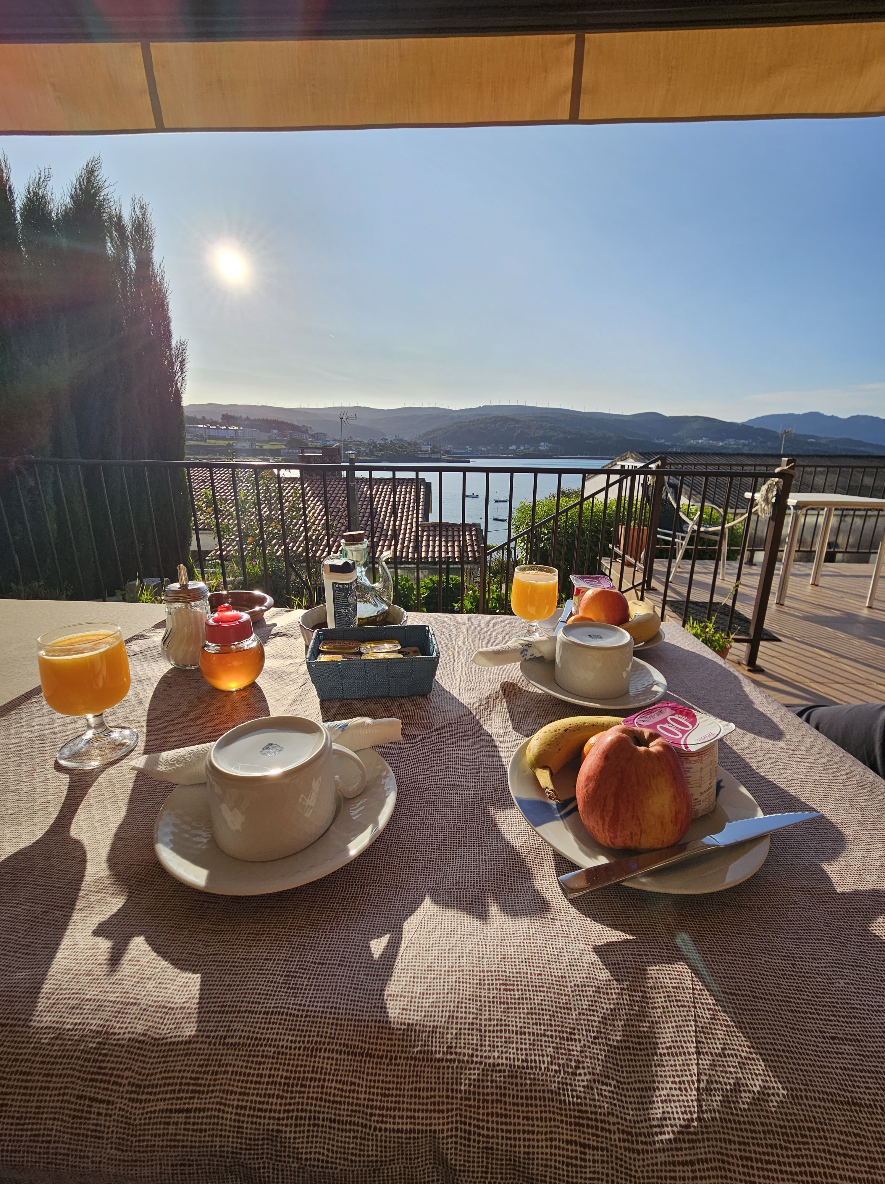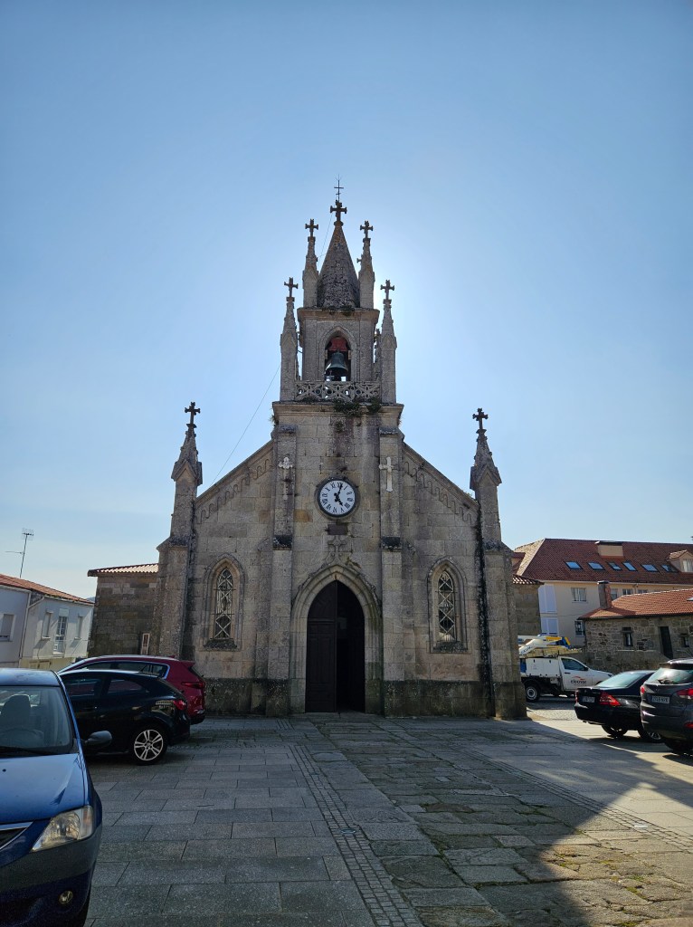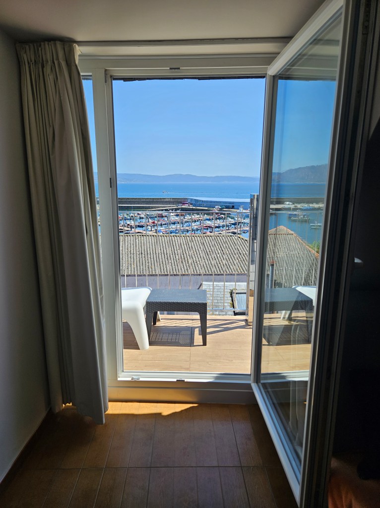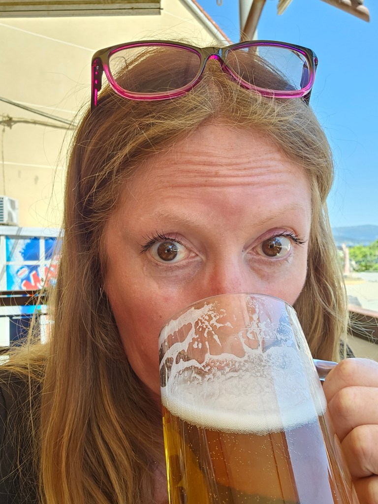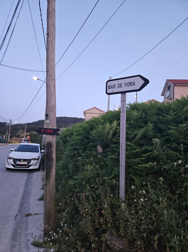 After dumping our packs we went straight for food and an ankerbier, one of the few places I knew would be open in the middle of the day. There we met and sat with the Hawaiian lady with the Pilgrim House poles, who had arrived the day before. Apparently she’d stayed at an albergue up by the lighthouse? At the other tables were a Hungarian Serb, a Canadian Scot walking his third camino with two German brothers, and a Galician lady for local colour. And a Slovenian man who travelled with lightweight shot glasses and some firewater from home, which he happily shared with the others … then came the cremas, the hiervas, and then the German-Canadian outfit started on the tequila …