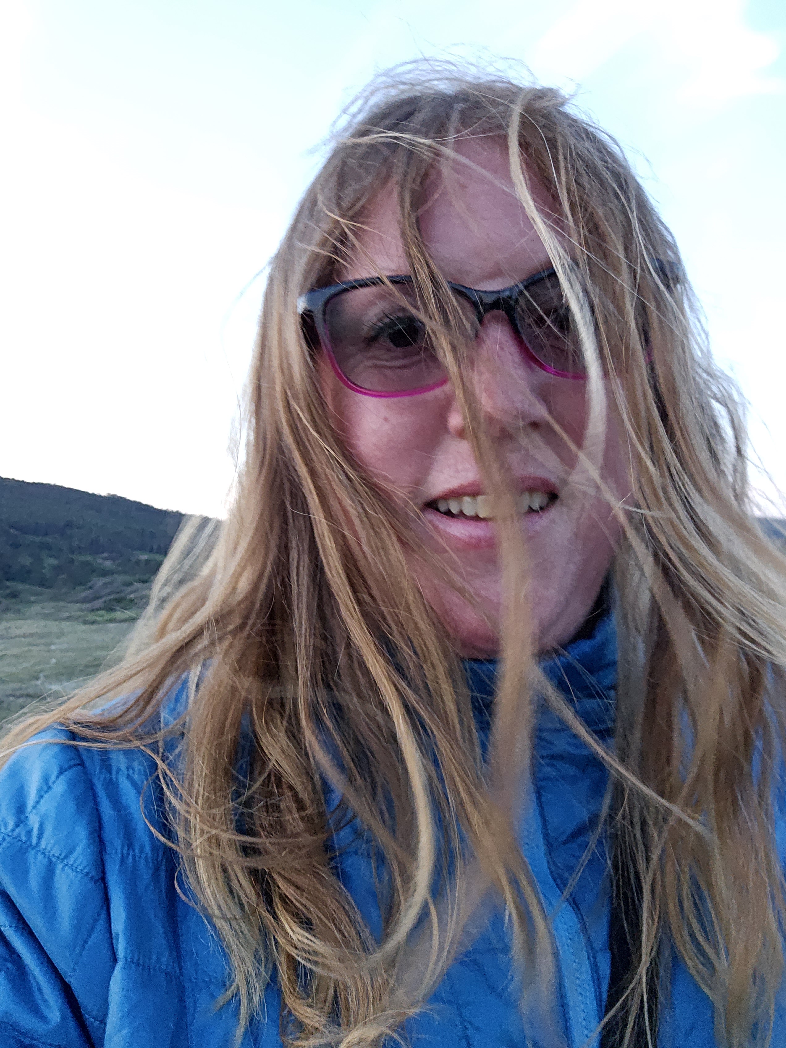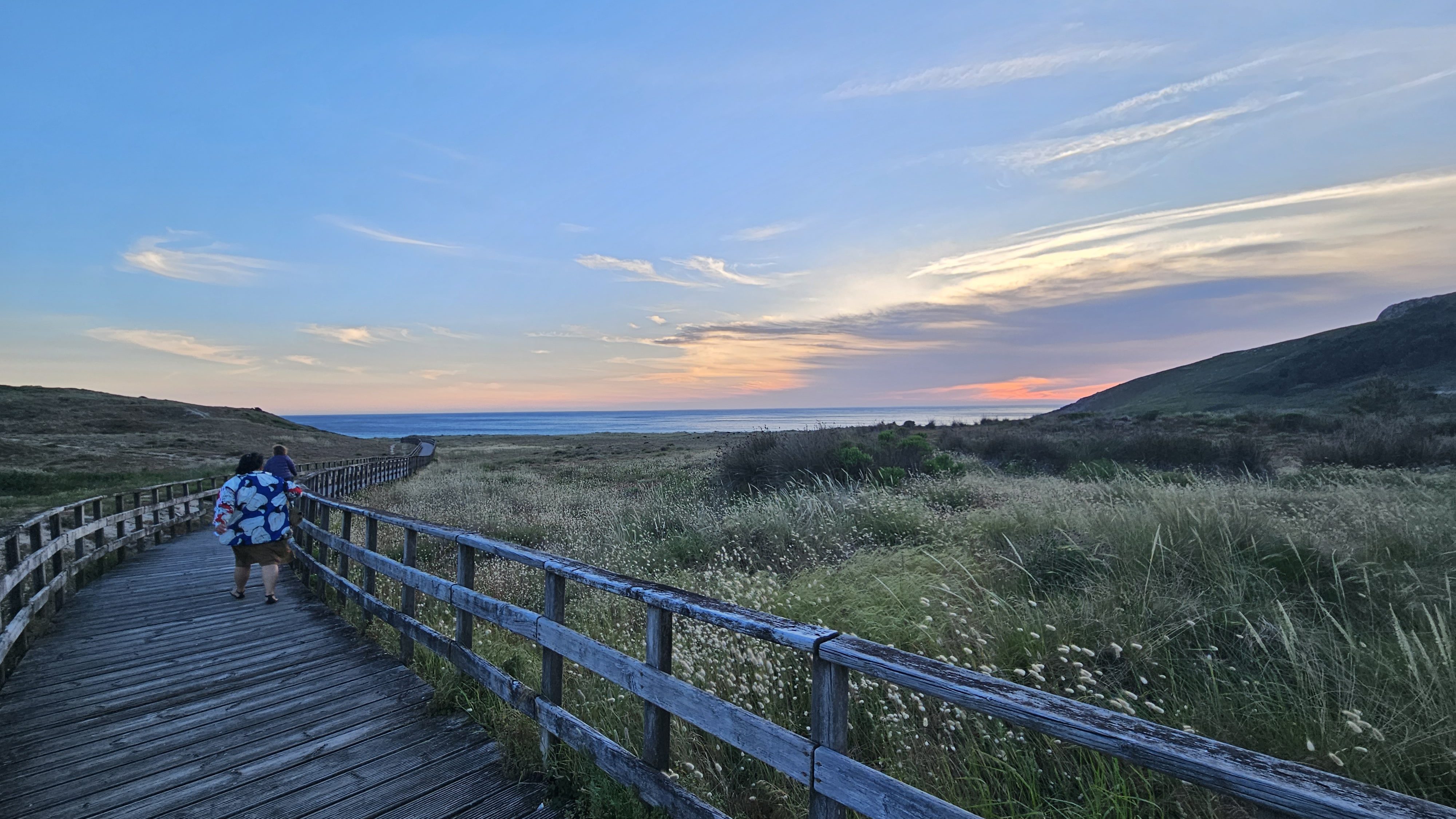 We took the sensible approach, and as dusk approached we went back to add more layers and meet miss Hawaii to go and watch the sunset from a beach on the other side of the headland. It was windy and cold, and I was so glad I had been carrying my padded jacket all this way.
