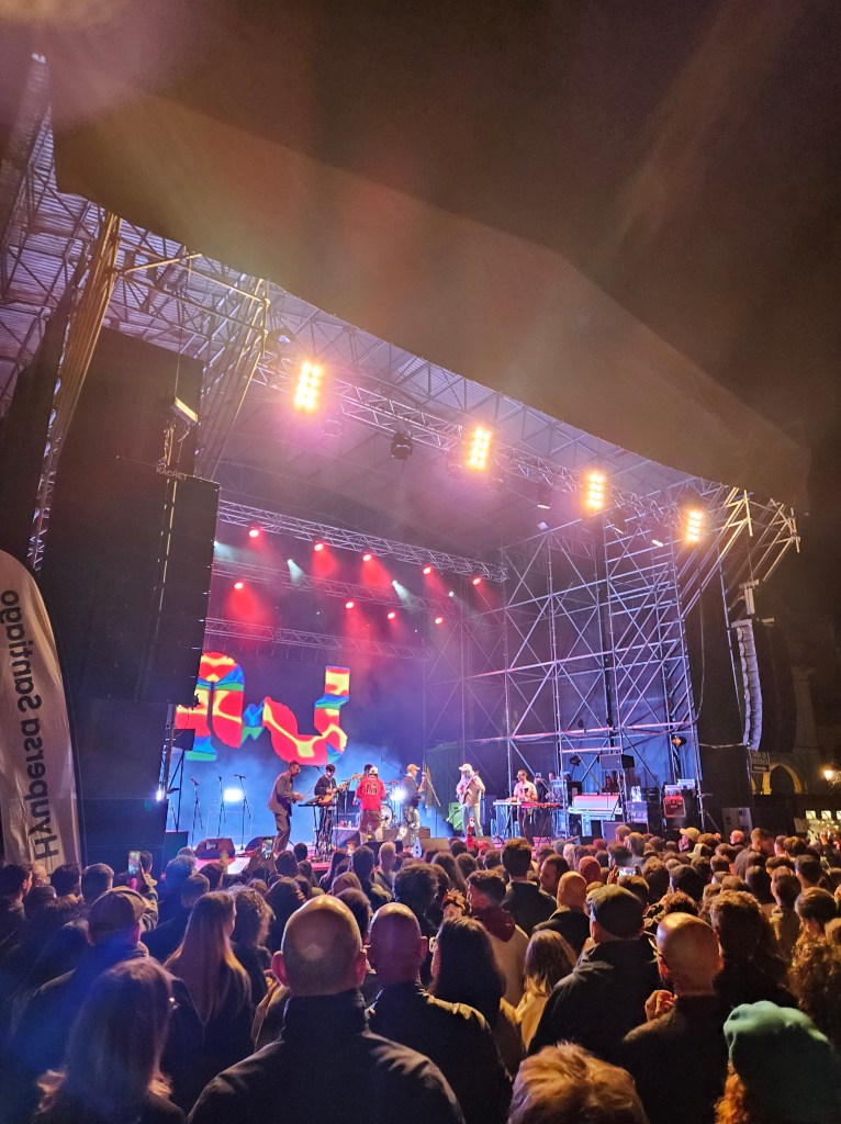 Then on my way back for a nightcap in the Rua Bella, I met a Swedish lady who was also there on her own. And as it was Saturday (I think), and everywhere was closing early because of the festival, and everyone was out in the streets, and we couldn’t get past the square for the crowds and couldn’t have a conversation over the concert, we decided that we might as well join them. So we hopped and bopped and danced with the fans, and even the Ferris wheel on the hill was blinking along with the music.