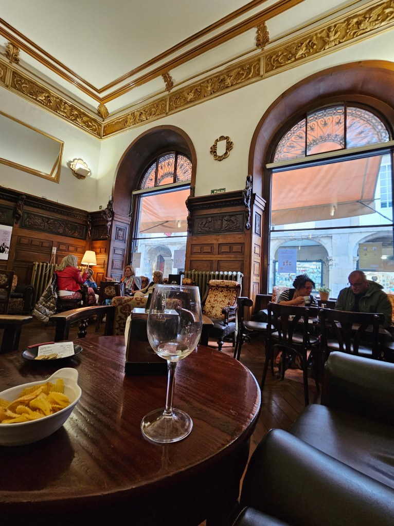 While Nanci stayed in and rested, I took myself for a tasty treat at Petiscos de Cardeal, and later I had a glass of albariño at Café Casino. Habits are hard to break, and why break these?