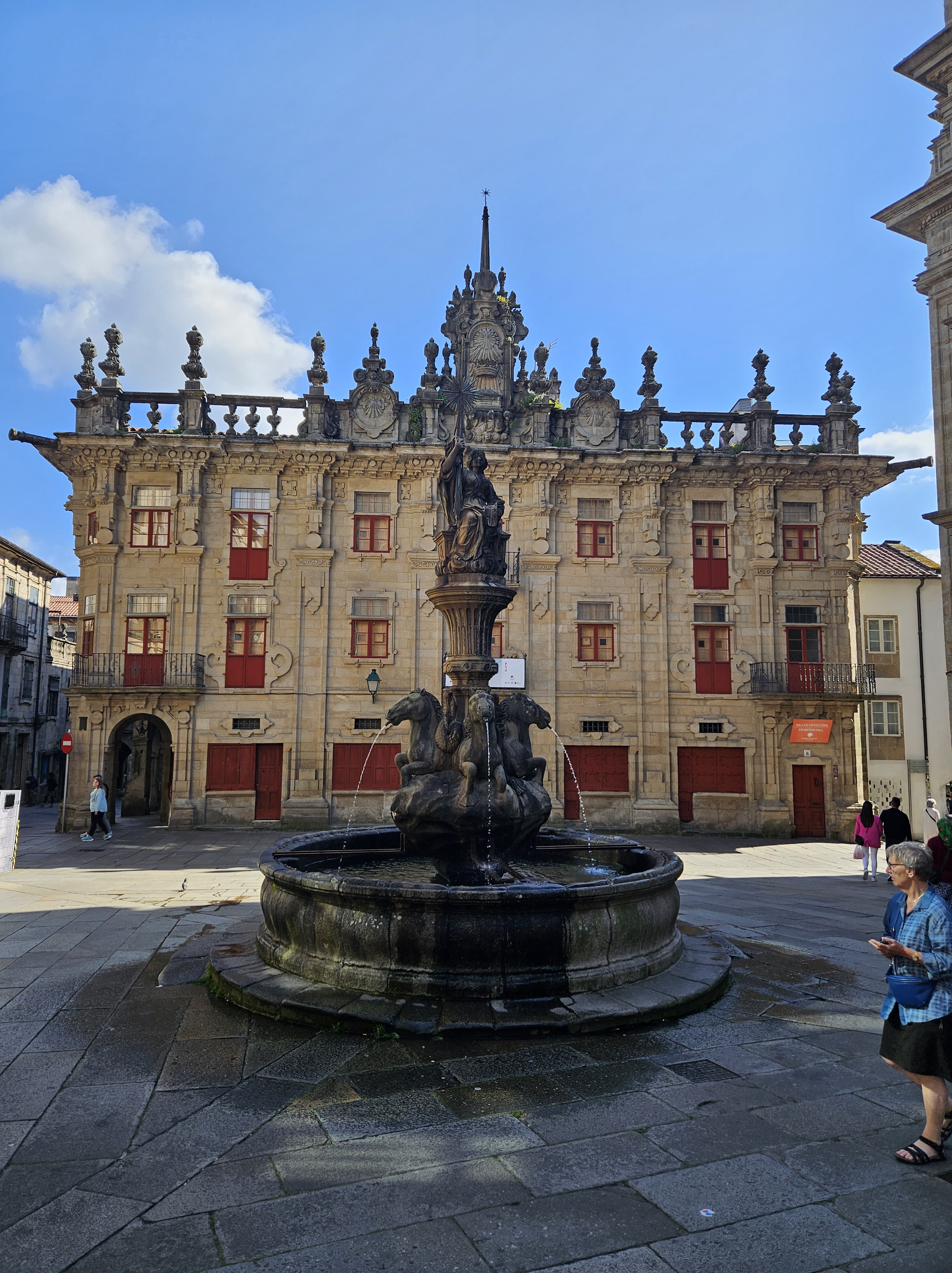 I kept myself busy: I went to Ivar’s luggage storage to pick up the box Nanci shipped to Santiago from Coimbra ages ago, I took a walk to the Decathlon in the city centre just because I could, I walked around just touristing – I clocked up a full 15 km mainly inside the old city walls! I visited the usual places and some I’d never been to before; I spent some time at the Obradoiro square just pilgrim watching. I even looked for – and found! – noughts-and-crosses ‘boards’ carved into the stone seats at the edges of the Obradoiro square, after telling Wendy about them. I met pilgrims, obviously; I took photos of solo walkers in front of the cathedral, had little chats here and there, shared my table for a cup of coffee. In spite of everything, it was nice to be able to spend some time in Santiago just aimlessly enjoying the city.