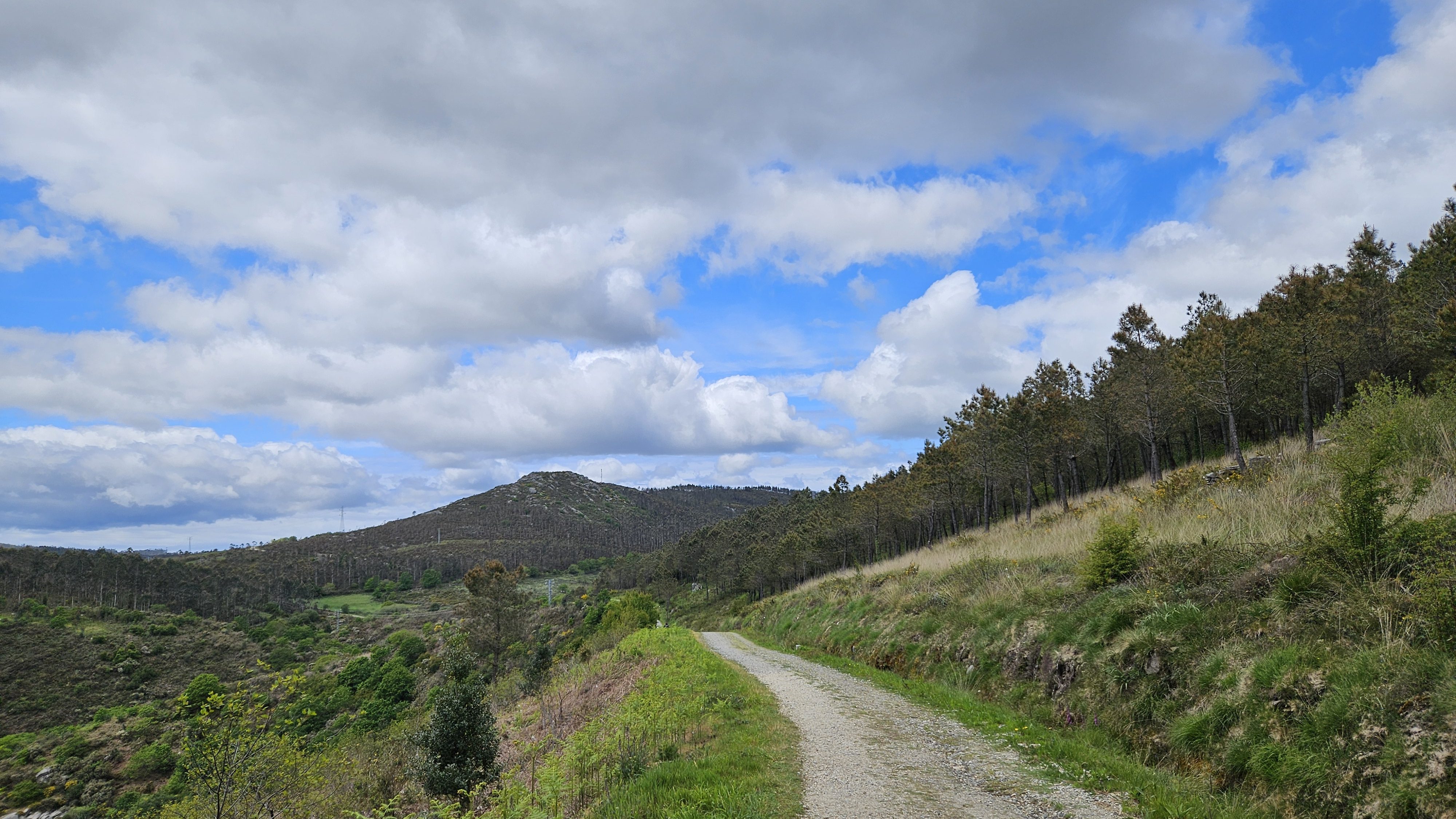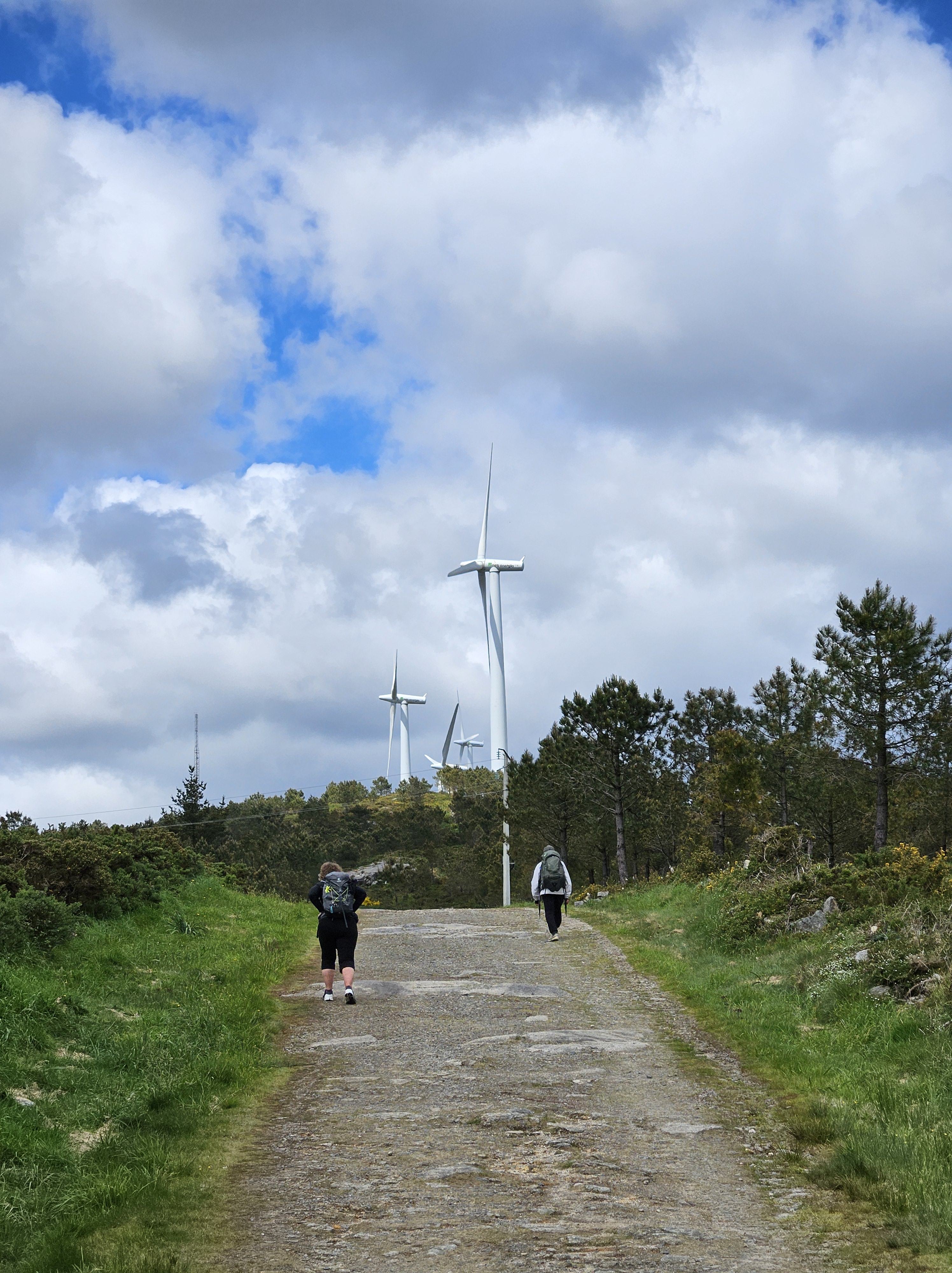 This time we left Santiago in a taxi to get to Olveiroa to start walking. The Muxia-Finisterre route splits shortly after O Logoso, so we could walk up there to enjoy their rooms and hospitality – and the hills, the views and the magic balancing stone – one more time before we took the trail to Muxia to finish the loop. Going to a place you have walked to, in a car, makes you realise how far you’ve actually walked! We got out in front of the Loncha restaurant and started our new adventure by celebrating our achievements with a nice lunch. Then off we went, up into the gorgeous hills.