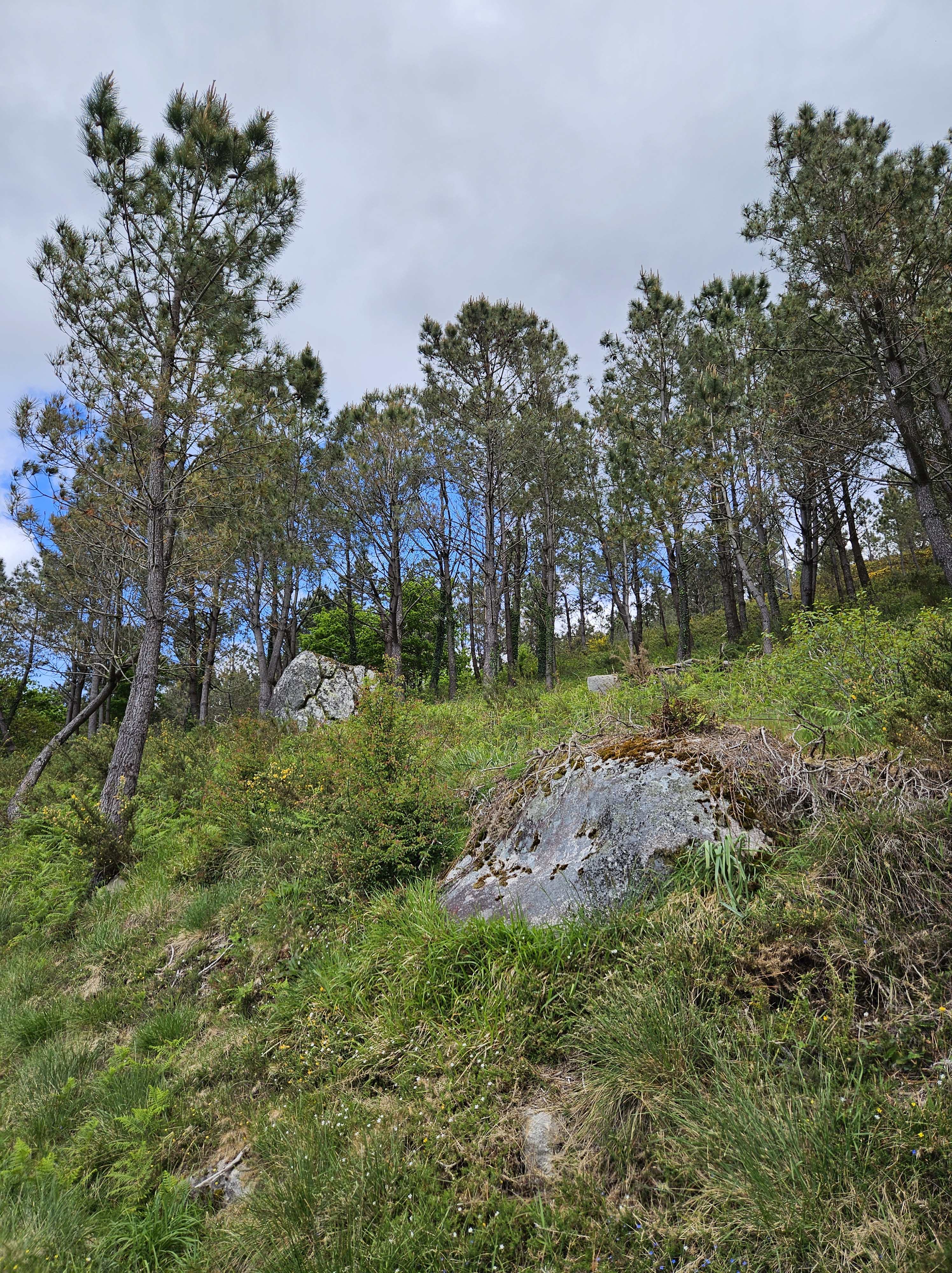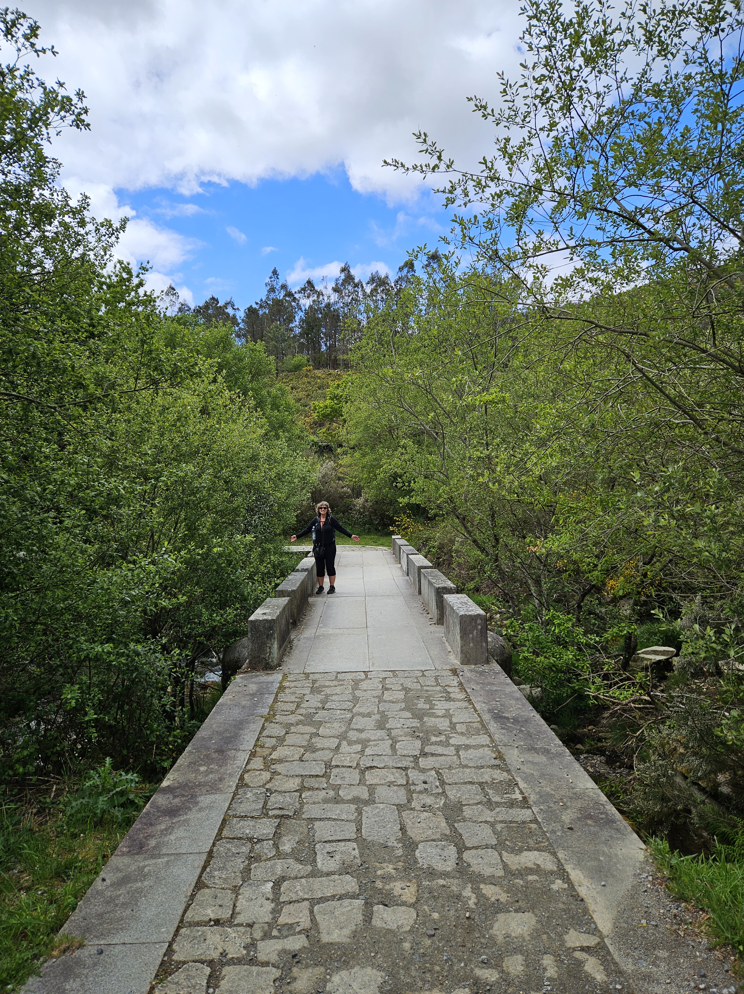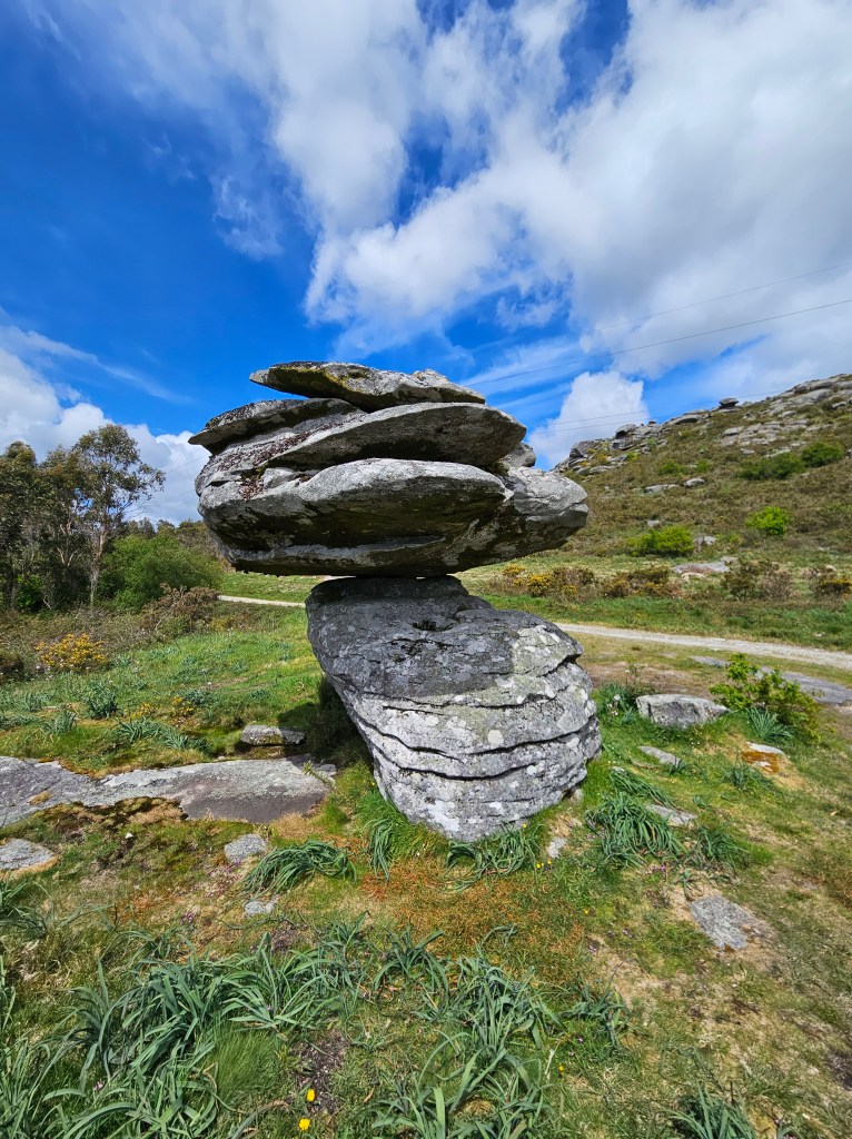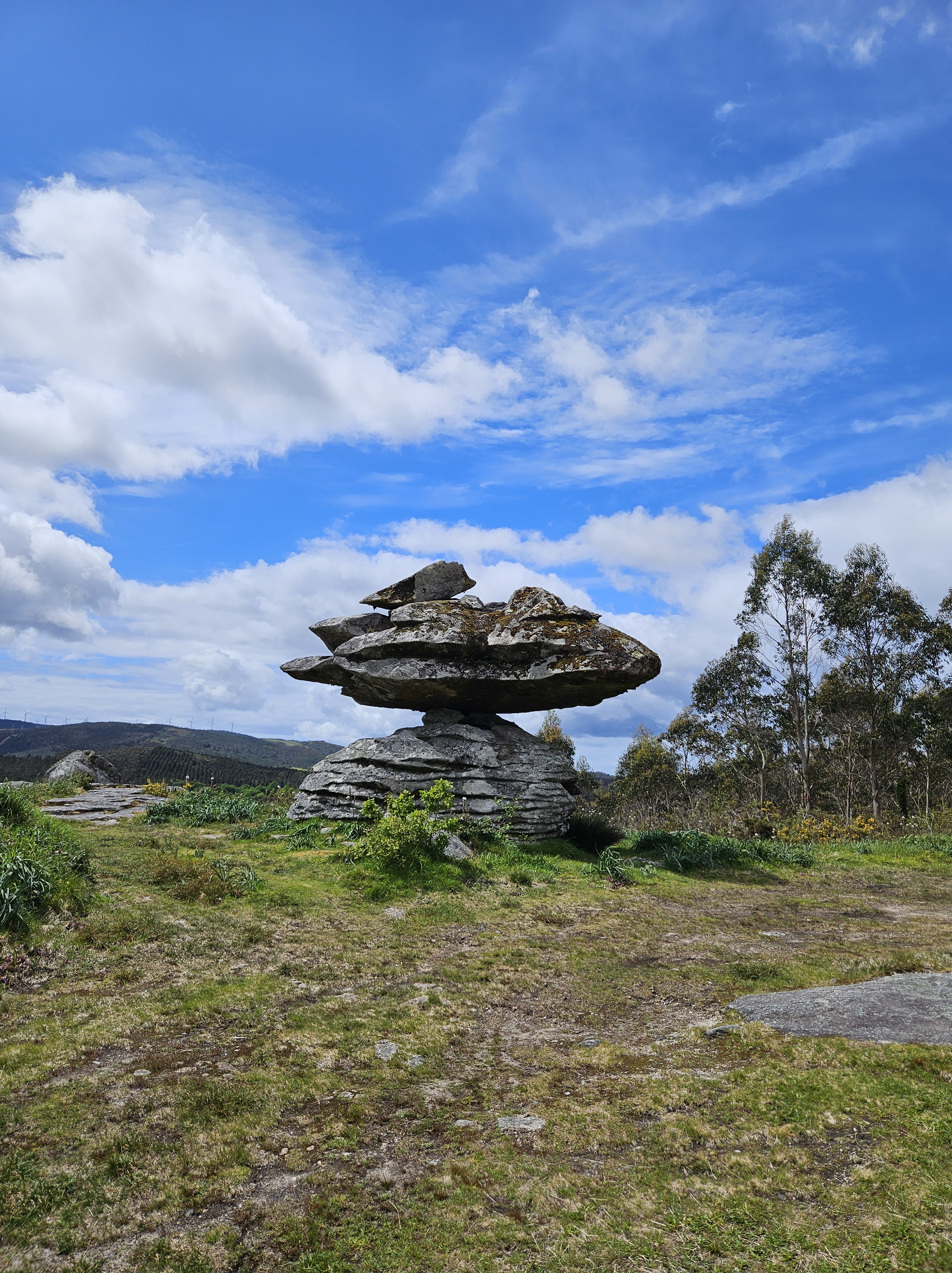 The weather was perfect for hill walking – cool enough to stop us overheating, sunny enough to get glorious photos. We hardly saw another person and took our time enjoying this revisit and the views. Then after the little bridge the path goes up, and then to the right, straight to O Logoso. But there is another path up to the left, a gravel path curving up and out of sight, and that’s the one we were going for. Follow that and you will find the Pedra do Brazal – the balancing stone.