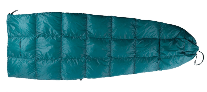 So I looked at normal quilts and blanket, but they would invariably fall off me in the night, or I’d end up sleeping on the mattress, which is what I was trying to avoid. I did get a Thermarest Juno blanket, though, thinking it’d work great at home in the winter – it is impressively warm for the thickness and weight of it! And it has a handy zipped pouch at one end to stuff it into when not in use, making it a very nice little pillow.