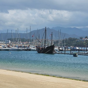 The penultimate day … Even if we were planning to carry on to Finisterre, it still felt like our focus – like most of the others on the trail – was on Santiago. We took our key back to the hotel and went for breakfast across the street from it. Nanci went to get money … More CP Coastal day 14 – Caldas de Reis to Padron